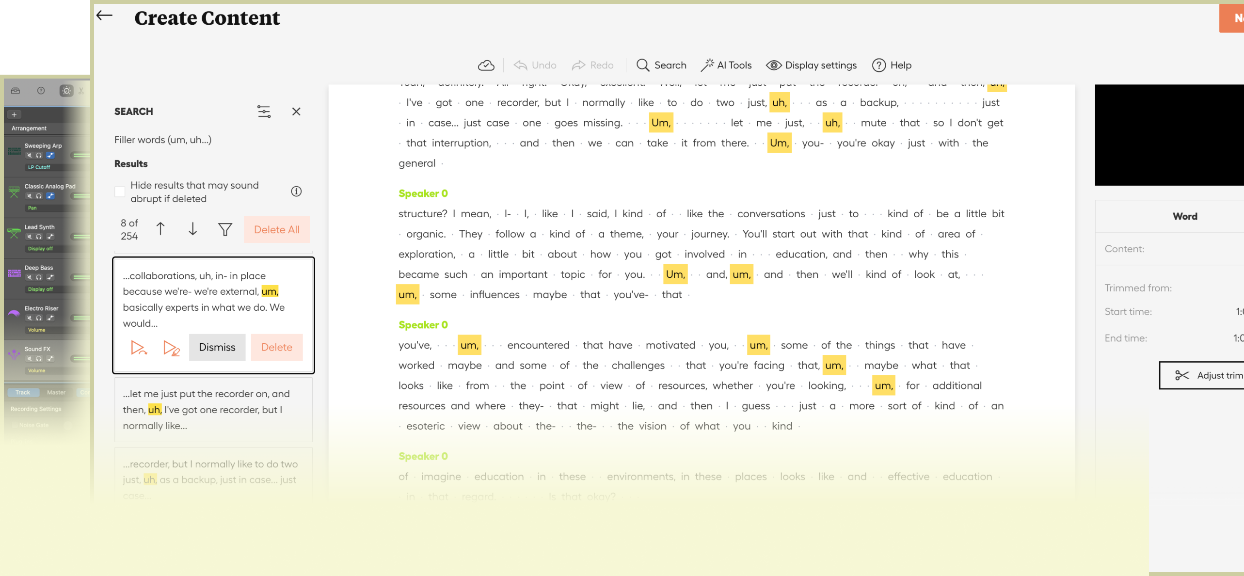 Remove ‘ums’, long pauses & rambling in one click.